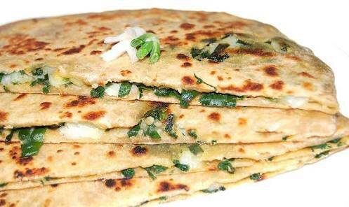 Fresh Green Spring Onions Paratha.